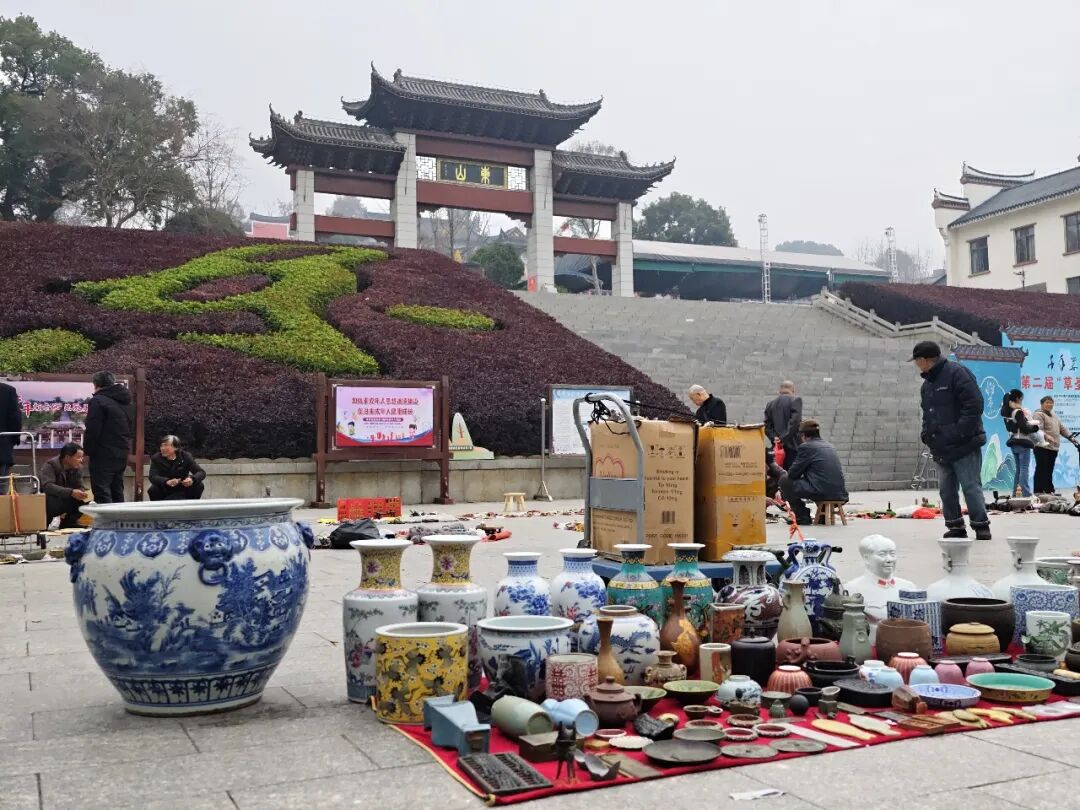 本网讯(记者 陈斌 单建华)12月30日,第二届“草圣”怀素书法艺术周系列活动之一的“绿天雅集”全国大型古玩文创广场交易会,在永州市零陵区东山景区沿街广场正式启动。尽管活动原定30日开始,但自29日起,已有十余位来自全国各地的古玩商家早早抵达并布置展位,提前营造出浓厚的文化集市氛围。