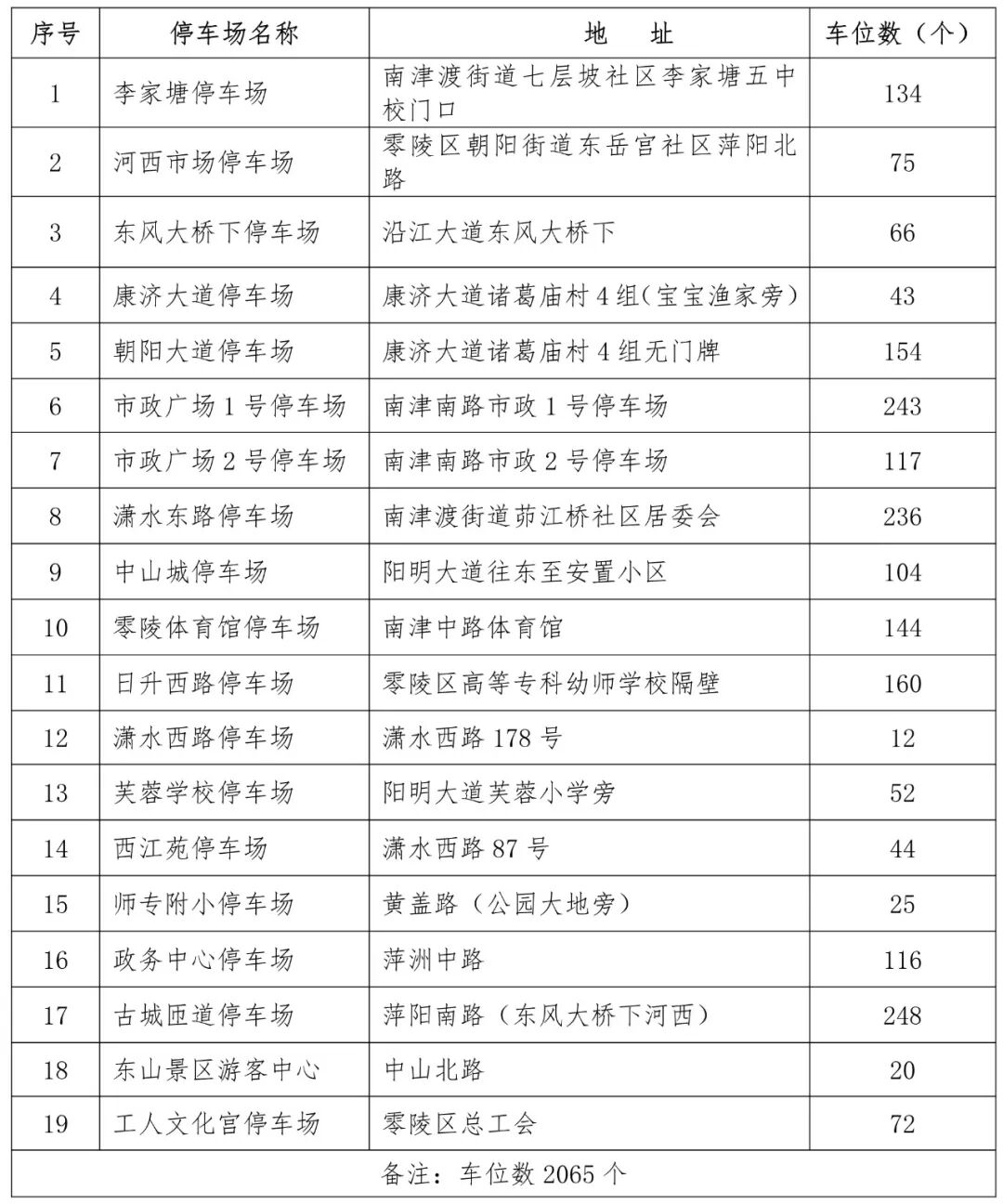 免费开放停车场名单