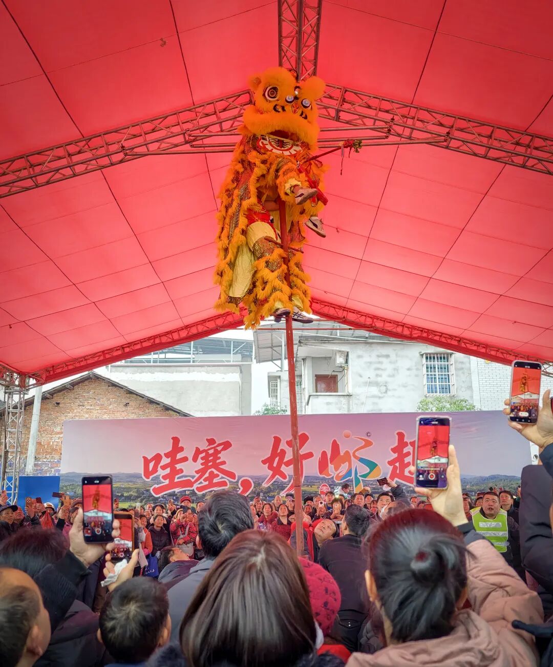 伴随着铿锵的锣鼓声,一场精彩的舞龙舞狮表演将现场气氛推向高潮。随后,地方特色的花鼓戏、轻松幽默的脱口秀等节目轮番上演,为逛集市的群众带来了视听享受,也让传统年节的文化氛围更加浓郁。