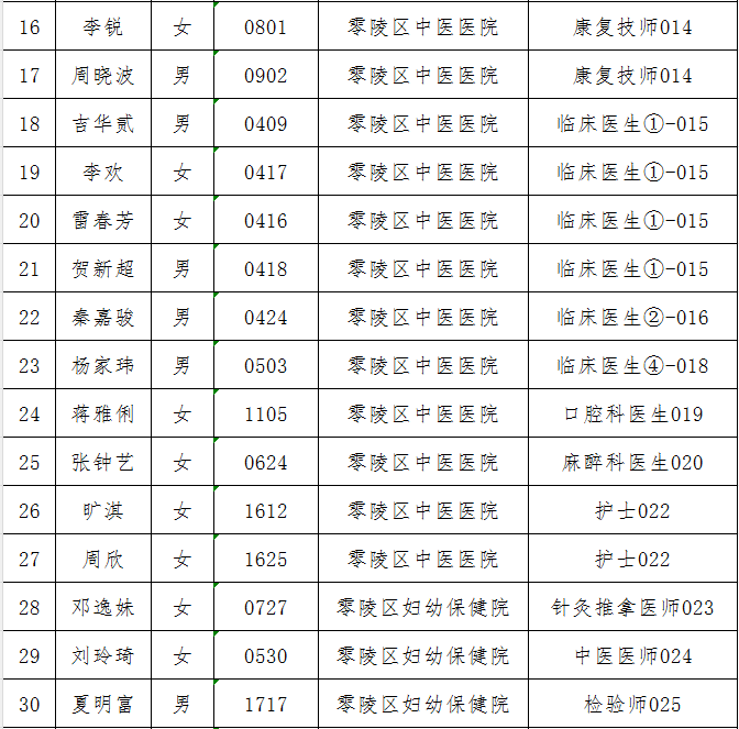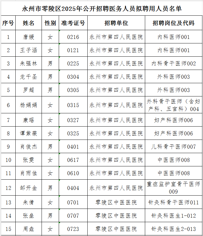 永州市零陵区2025年公开招聘医务人员拟聘用人员公示