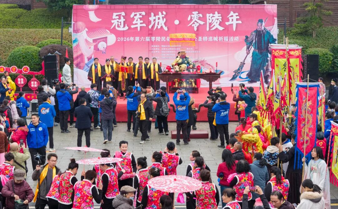 本网讯(记者 陈斌 郑炜)龙腾狮舞迎新春,圣轿巡城贺佳节。2月9日,“冠军城·零陵年”2026年第六届零陵民俗庙会之关公圣轿巡城祈福活动在永州零陵东山景区精彩启幕,为古城零陵增添了浓厚的传统年节氛围与文化魅力。