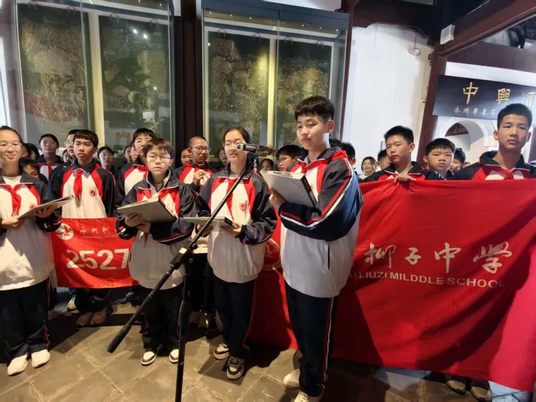 本次活动严格遵循非遗祭祀规制,分为东山展演、巡城追思、柳庙祭祀三大环节。上午9时30分,参祭人员身着正装与祭祀服在东山广场集结,大屏幕滚动播放柳子文化主题影像,现场气氛庄重肃穆。9时40分,祭典正式启幕,狮舞龙腾、零陵渔鼓轮番上演。永州各院校师生依次登台,集体朗诵《小石潭记》、吟诵《江雪》、唱诵《柳韵零陵》,以经典诗文致敬先贤。沉浸式的文化展演让现场观众深切感受到柳文化的独特魅力。