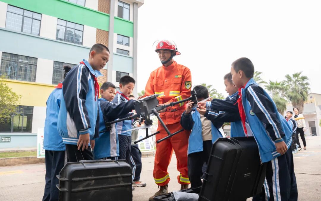 活动设置了森林防火扑火设备实战展示环节,零陵区森林消防员模拟火情,动态演示了无人机、机器狗等先进科技灭火装备,吸引了师生广泛关注。现场还静态展示了消防水车、山地摩托车、油锯等多种扑火器材,让学生们近距离了解森林防火灭火设备与流程。此外,学校同步组织了森林防火专题班会课和知识抢答活动,通过差异化、趣味性的教学方式,有效提升了学生们的防火安全意识和自救互救能力。