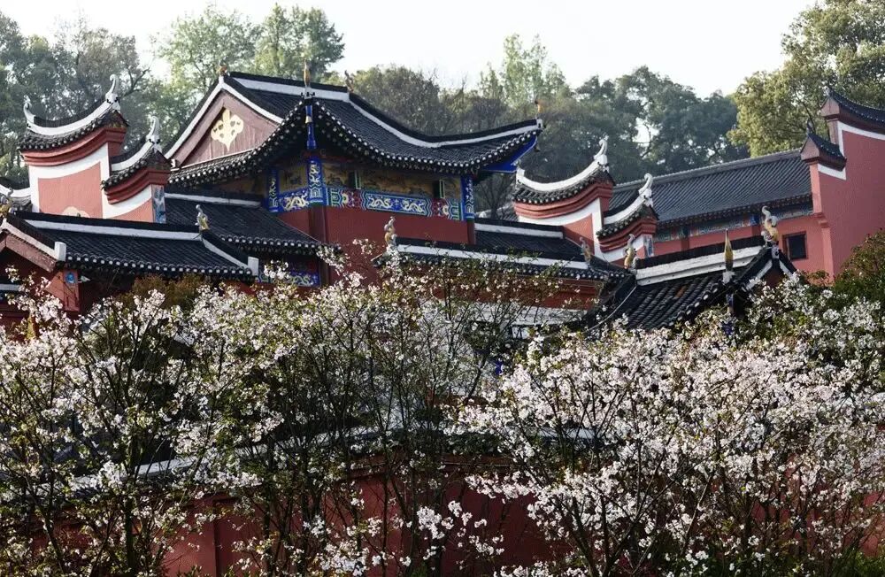 我们将车停在山顶公共停车场。秋日的东山毫无萧瑟之感,依然葱茏蓊郁。古樟枝干遒劲,枝叶如盖;树下女贞、月季、丁香绽放紫红花朵,清香缕缕;鸟儿穿梭林间,鸣声清脆。飞檐翘角的文庙、武庙、钟楼、古阁与高山寺掩映于绿树芭蕉之间,悠扬笛声从林荫凉亭中传来,悦耳动听,令人心旷神怡。